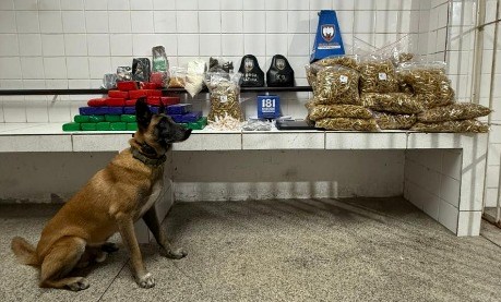 Após informações sobre a existência de um ponto de tráfico de drogas em um prédio residencial da região, equipes da Força Tática, com apoio do K9, deslocaram-se ao local para averiguação. Durante a ação, o cão farejador indicou a presença de substâncias ilícitas em dois apartamentos.