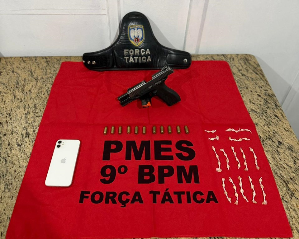 Uma ação da Polícia Militar, realizada na última segunda-feira (27), resultou na prisão de um suspeito e na apreensão de entorpecentes, arma de fogo e um artefato explosivo em bairros do município da Serra.