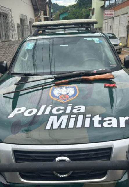 Durante buscas externas, a equipe localizou uma espingarda calibre 36, uma arma de pressão e nove munições intactas escondidas próximo ao curral da propriedade. Ao ser questionado, o morador afirmou ser o proprietário da arma encontrada e declarou não possuir documentação legal para a posse.