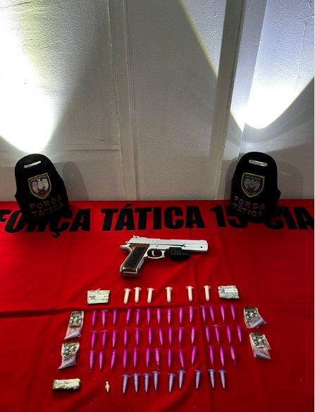No decorrer da ação, o suspeito admitiu que havia levado entorpecentes para comercialização no local. Em buscas realizadas na residência, foram apreendidos materiais ilícitos, incluindo substâncias análogas à cocaína, maconha e crack, além de um simulacro de arma de fogo.