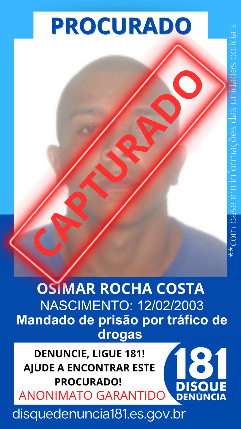 A ação reforça a importância das denúncias anônimas feitas pela população por meio do Disque-Denúncia 181, que ajudam as forças de segurança no combate à criminalidade e na captura de foragidos.