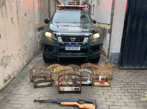 Durante as buscas, os militares também encontraram oito alçapões (armadilhas para captura de aves) e duas espingardas, sendo uma de calibre 5.5 mm e outra calibre .22, ambas sem documentação. As armas foram apreendidas e lacradas sob o número de registro 0828297.