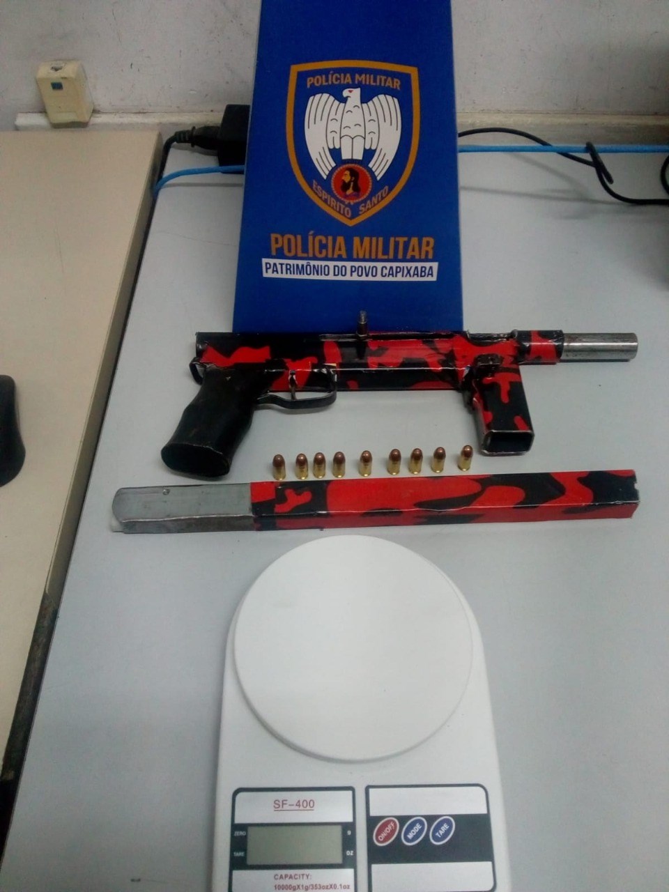 Na tarde desta quinta-feira (23), durante averiguação de informação oriunda do Disque-denúncia em Nova Carapina II, policiais militares do 6º BPM (Serra) avistaram um indivíduo em atitude suspeita que fugiu após tentativa de abordagem. No trajeto feito durante a fuga foram encontrados abandonados 01 submetralhadora cal. .380 de fabricação artesanal, 01 carregador, 09 munições cal. .380 e 01 balança de precisão. A ocorrência encaminhada ao Plantão da 3ª Delegacia Regional.