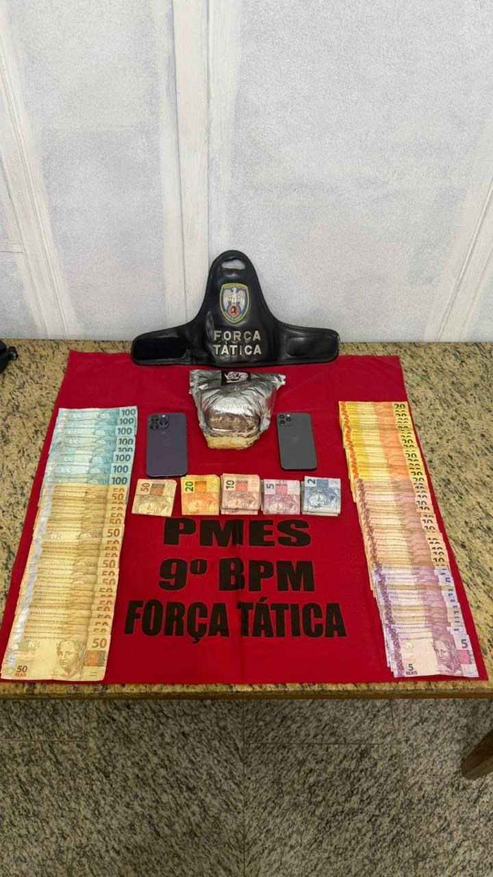 Os policiais também realizaram buscas em veículos vinculados ao suspeito, onde foram localizados R$ 4.227,00 em dinheiro. Diante dos fatos, foi dada voz de prisão, sendo o conduzido encaminhado à delegacia especializada para as providências legais cabíveis.