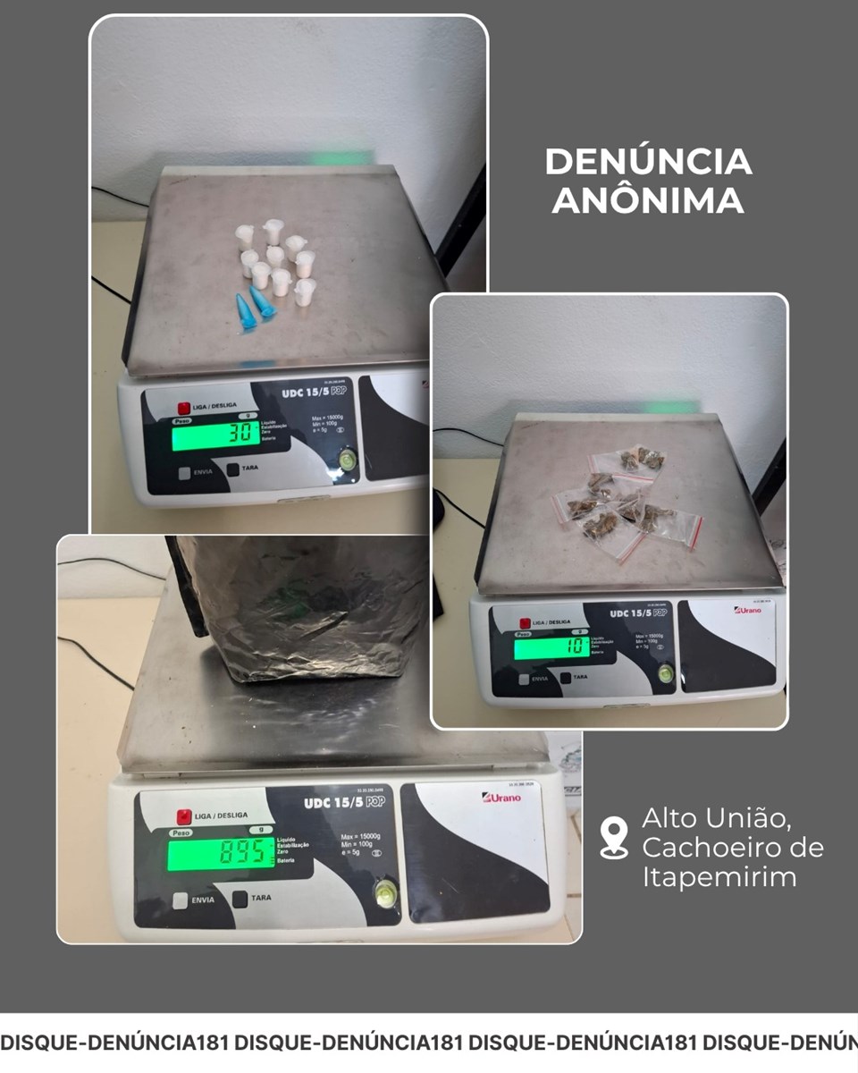 Uma ação da Polícia Militar resultou na apreensão de entorpecentes e na detenção de três pessoas suspeitas de envolvimento com o tráfico de drogas no bairro Alto União, em Cachoeiro de Itapemirim, na manhã desta terça-feira (22).