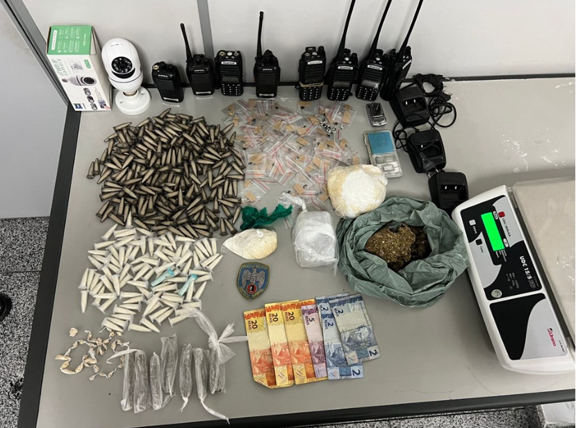 A Patrulha de Aglomerados da 1ª Companhia obteve êxito ao deter três indivíduos menores de idade em posse dos seguintes materiais: 845 gramas de cocaína, 337 pinos de cocaína, 117 bolas de haxixe, 34 pedras de crack, sete tiras de maconha, uma pedra de crack contendo 250 gramas, uma sacolinha contendo 30 gramas de crack, uma sacola com 125 gramas de maconha, oito rádios comunicadores, três bases de carregador, duas balanças de precisão, duas câmeras de monitoramento, uma sacola com vasto material de embalo e R$ 71,00 (setenta e um reais) em espécie.