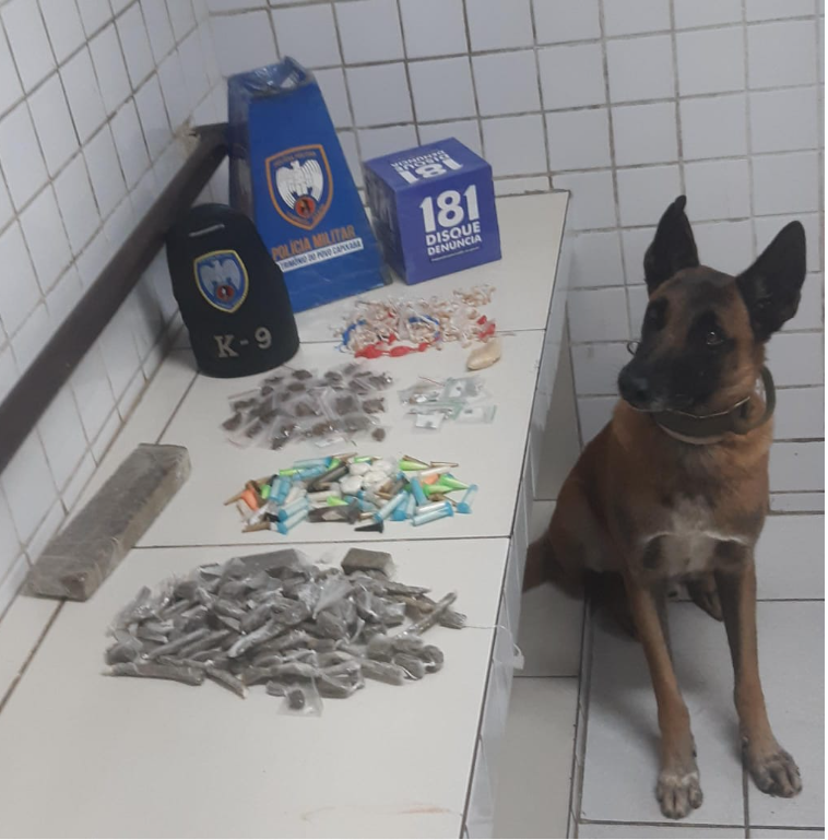 A equipe do k9 e o serviço reservado do 6º batalhão contaram com o apoio do cão farejador Apollo, especialista em faro de drogas e armas, o que resultou na apreensão dos seguintes entorpecentes: