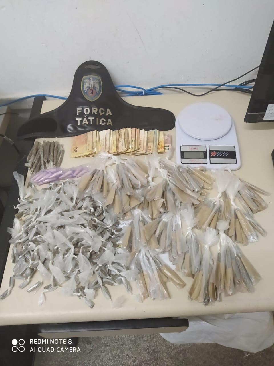 FORÇA TÁTICA E EQUIPE K-9 APREENDEM DROGAS E DINHEIRO NA SERRA