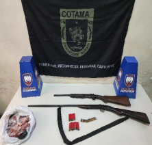 Uma denúncia anônima feita ao Disque-denúncia resultou na apreensão de armas de fogo e de carne de animal silvestre abatido ilegalmente, no município de Guarapari, no bairro Camurugi. A ação foi realizada por equipes do Comando de Operações Táticas em Mata Atlântica do Batalhão de Polícia Militar Ambiental.