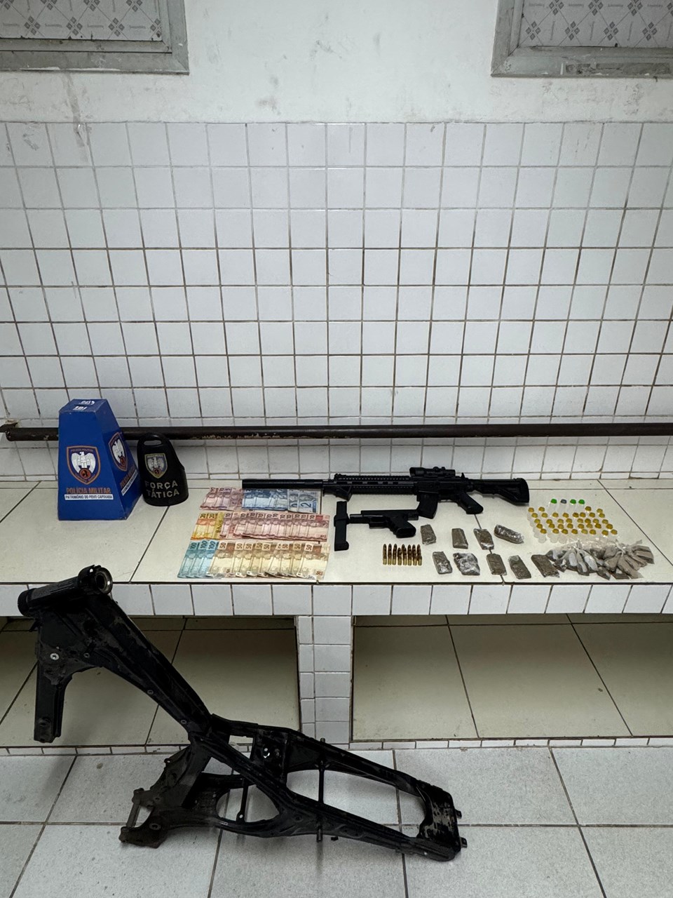 Segundo o relato, o principal suspeito e sua companheira realizavam tráfico de drogas no local, com intensa movimentação de usuários e a presença de armas de fogo de cano longo. Durante patrulhamento da PM, a guarnição foi abordada por um cidadão que, temendo represálias, optou por não se identificar, mas reforçou as informações da denúncia.