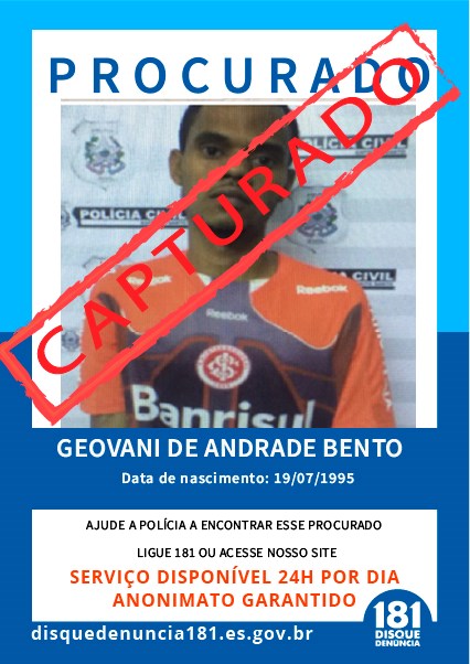 Geovani Andrade Bento, o Vaninho, que estava na lista dos 10 bandidos mais procurados do Estado e foi preso na tarde desta terça-feira (18), durante uma operação da Polícia Rodoviária Federal (PRF), em Guarapari.